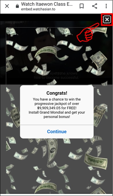 물론 눌러야 하고, 누르면 팝업 광고가 나오기도 하고 리디렉션 되어서 완전 새창의 브라우저 광고가 뜨기도 합니다. 이럴 때 당황하지 마시고, 우측 상단의 x 표를 클릭해서 창을 다 닫아 주시면 됩니다.