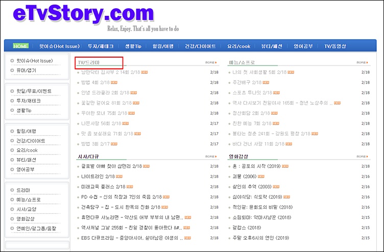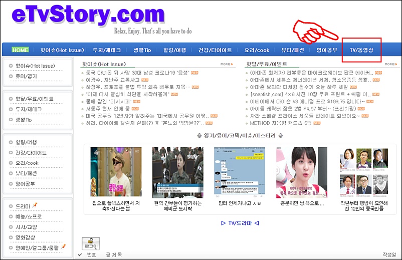 제가 즐겨 찾는 사이트 중에 하나를 소개해드리면, 아직 잘 알려져 있지 않은 이티비스토리닷컴인데요. 다른 사이트들도 비슷한데 무료로 운영되다 보니 광고 함정이 좀 많은 편입니다.