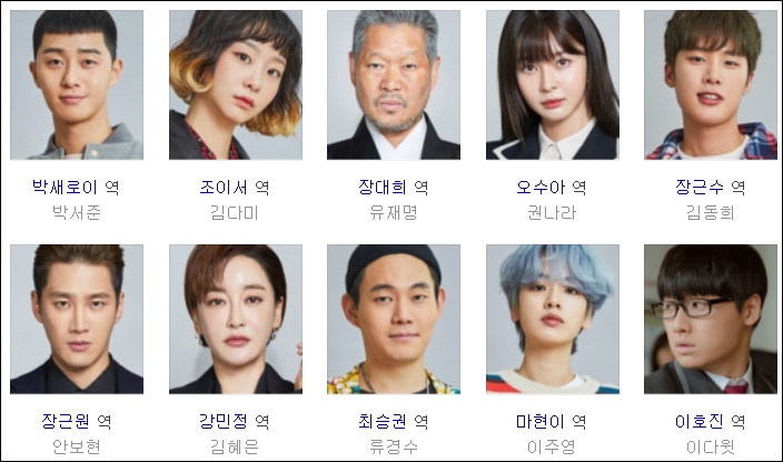 박새로이(박서준), 조이서(김다미), 장대희(유재명), 오수아(권나라), 장근수(김동희), 장근원(안보현), 강민정(김혜은), 최승권(류경수), 마현이(이주영), 이호진(이다윗)
